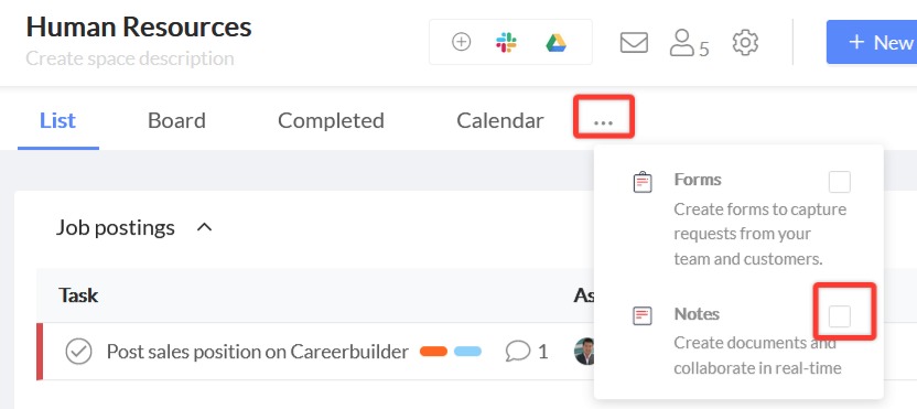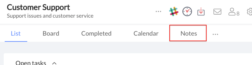 - Once you've added the 'Notes' app to the space, it will show up in a link in the space next to calendar view.