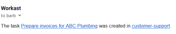 - Send the email to create the task. You will get an email receipt confirming the that the task has been created, and with a link to the task.