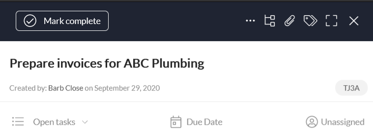 - The subject line in your email will be the task title. For example, if you want to create a task to prepare invoices for ABC plumbing in your customer support space, your email subject line would be "Prepare invoices for ABC plumbing."
