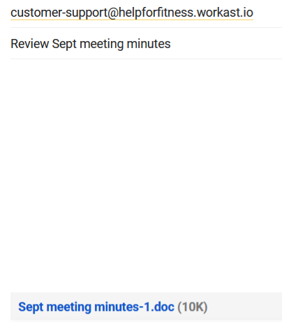 - A dialogue will open, showing your space email address, which is generally spacename@yourteamname.workast.com/io.