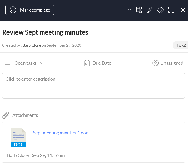 - You can add an attachment to a task created by email. Attach your file or files to the email, addressing them as instructed above, and adding assignees and followers if desired.