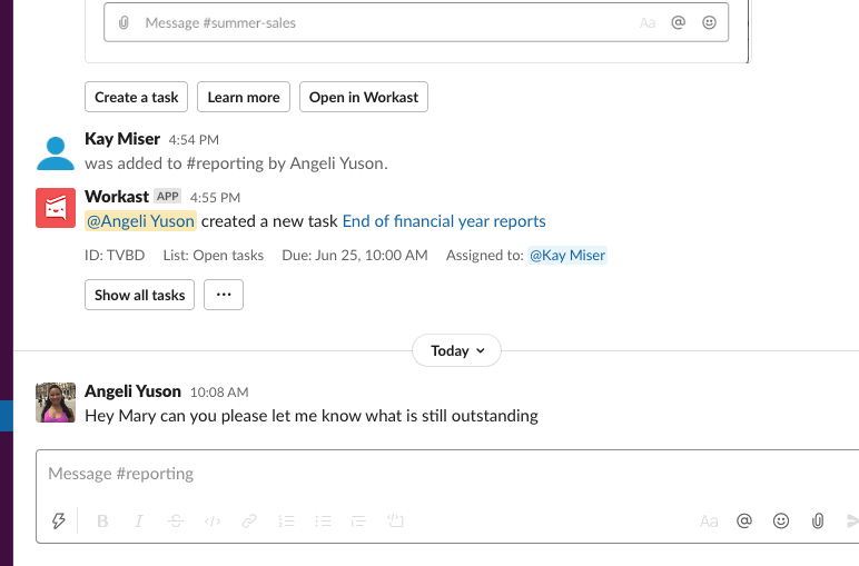 - Click on any of the Workast task links in Slack